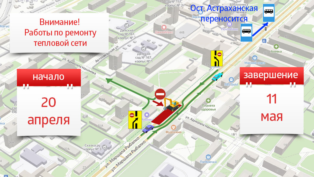 В связи с ремонтом теплосети с 20 апреля по 11 мая в Перми закрывается движение транспорта по нечётной стороне ул. Маршала Рыбалко на участке от ул. Оборонщиков до ул. Ласьвинской. Об этом сообщает «Рифей».
