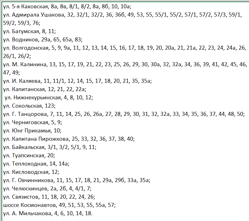 С 25 мая по 8 июня горячая вода исчезнет по следующим адресам:
