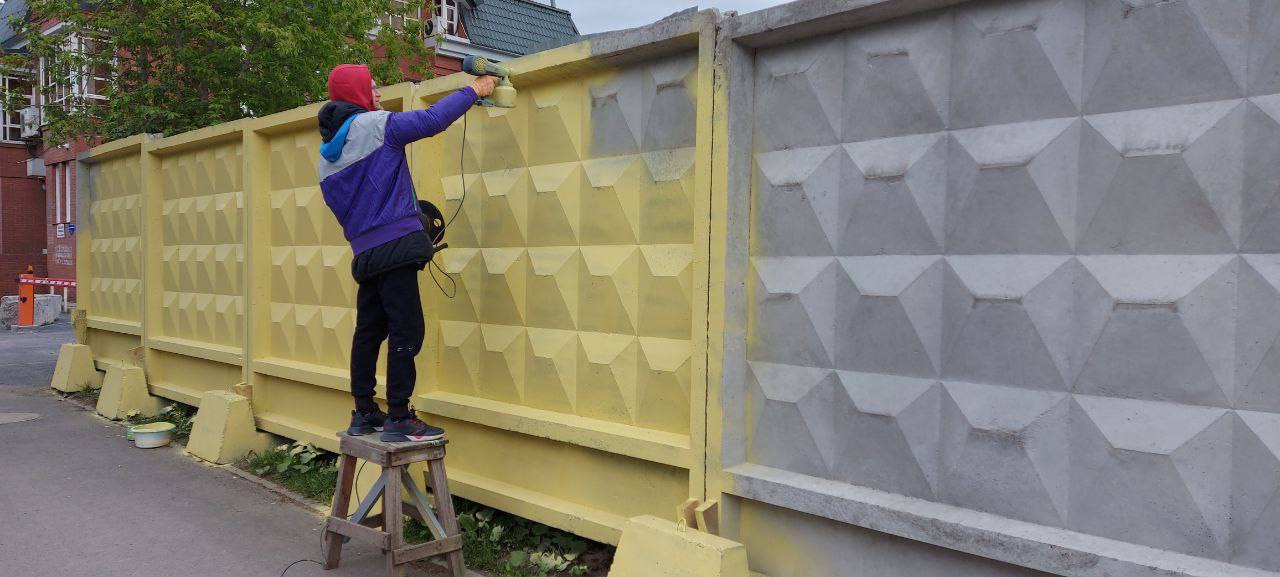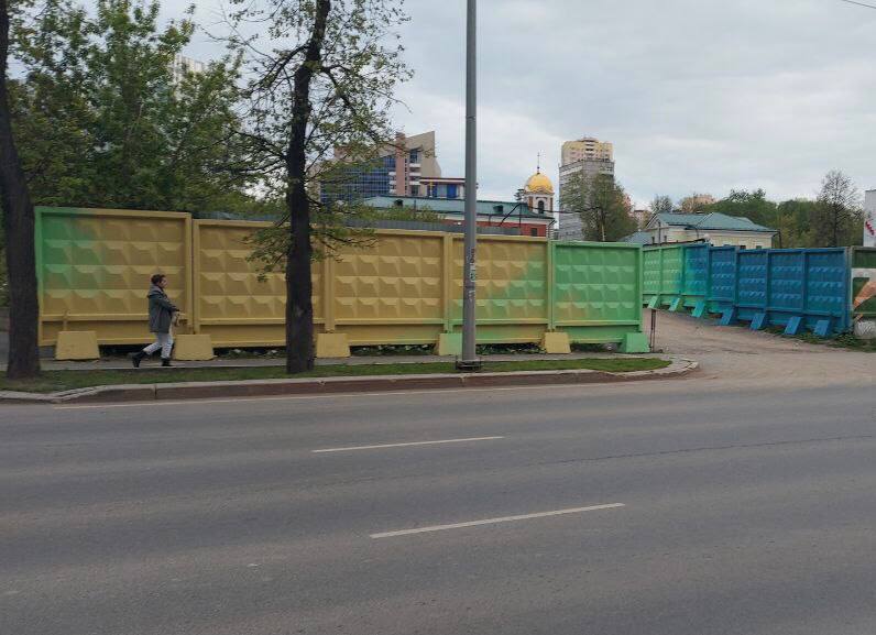 Художники уже начали заливку фона на заборе, а вся работа продлится около двух месяцев. Точный срок зависит только от пермского неба.