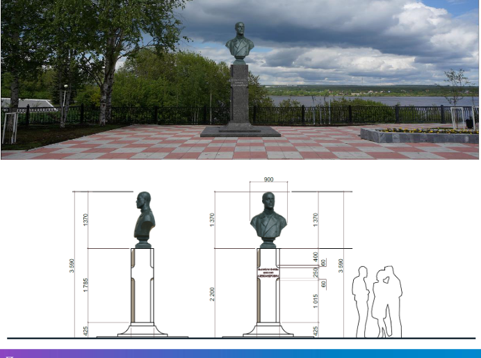 Автор бюста — пермский скульптор Алексей Матвеев, известный благодаря памятникам Александру Попову, профессору Павлу Преображенскому и другим.
