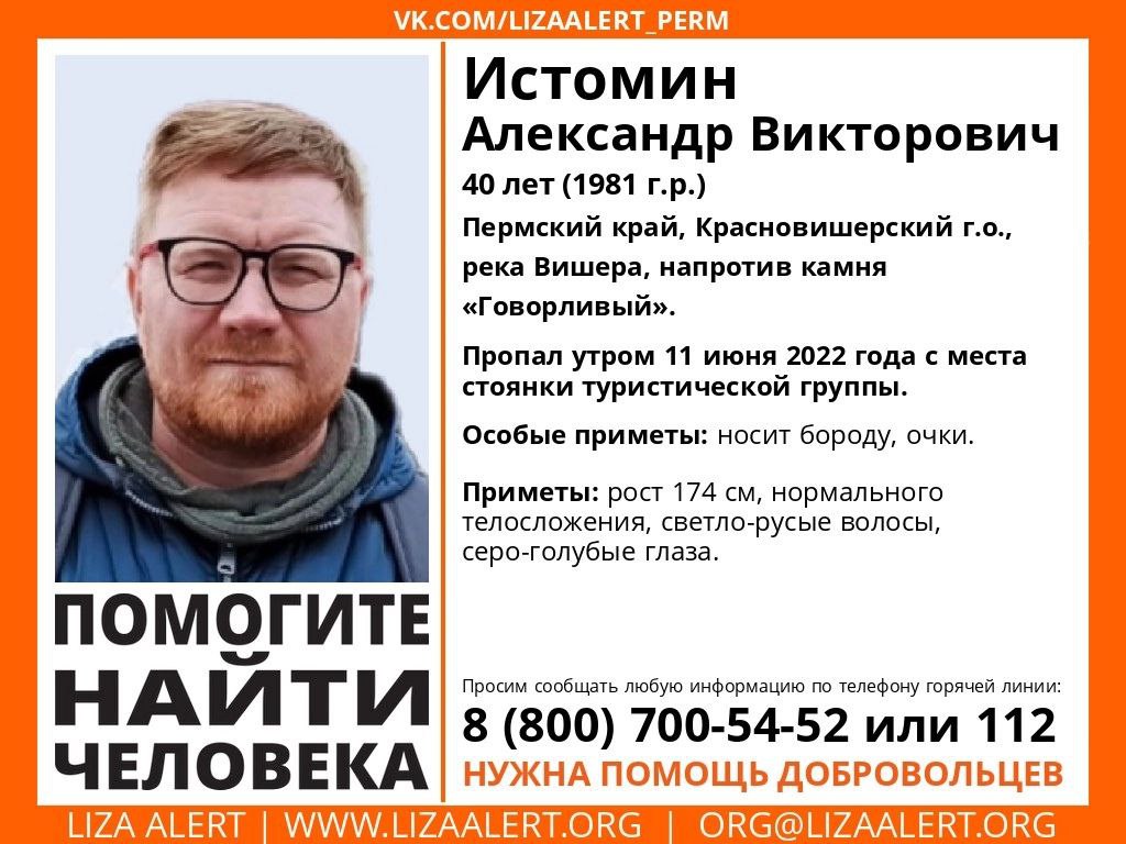 Уточняется, что группа туристов сделала стоянку на берегу Вишеры в районе камня Говорливый. С субботу 11 июня о местоположении Александра Истомина ничего неизвестно.