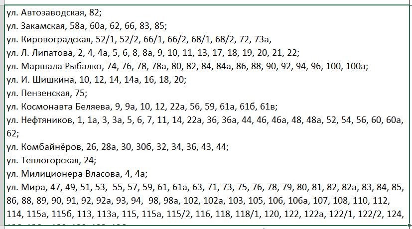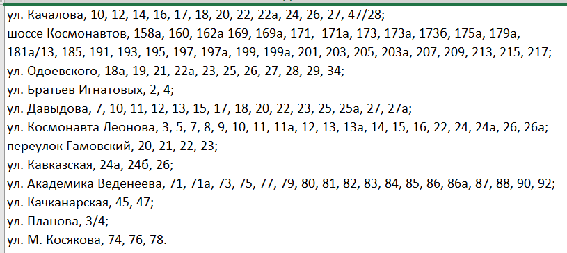 В тот же период под отключение попадут следующие дома: