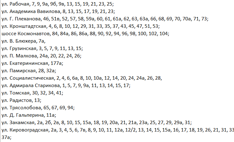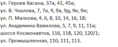 С 30 июня по 14 июля отключение пройдёт в домах: