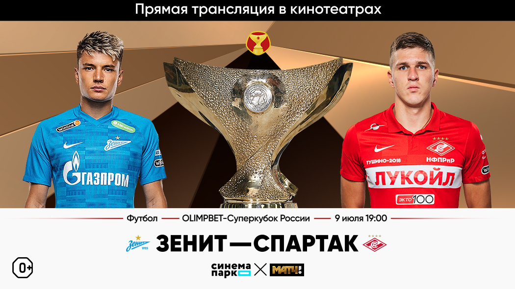 В кинотеатрах в ТРК «Семья» и «Кристалле» покажут трансляцию футбольного матча за Олимп-Суперкубок России между «Зенитом» и «Спартаком». Об этом сообщается на сайте сети кинотеатров «Синема парк».