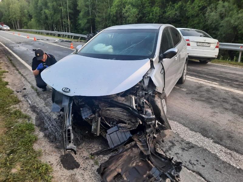 По предварительным данным, аварию спровоцировал 27-летний водитель автомобиля «Фольксваген Гольф». На 38 км трассы шофёр начал выполнять обгон, но не убедился в безопасности манёвра. Чтобы избежать столкновения, водитель двигавшегося во встречном направлении автомобиля «Kиа Рио» выехал на правую обочину, допустил занос на полосу встречного движения, где произошло столкновение с автомобилем ВАЗ-217130 и автомобилем «Шкода Октавия». В результате ДТП 59-летний водитель отечественного автомобиля скончался на месте происшествия, водитель «Kиа Рио» госпитализирован.