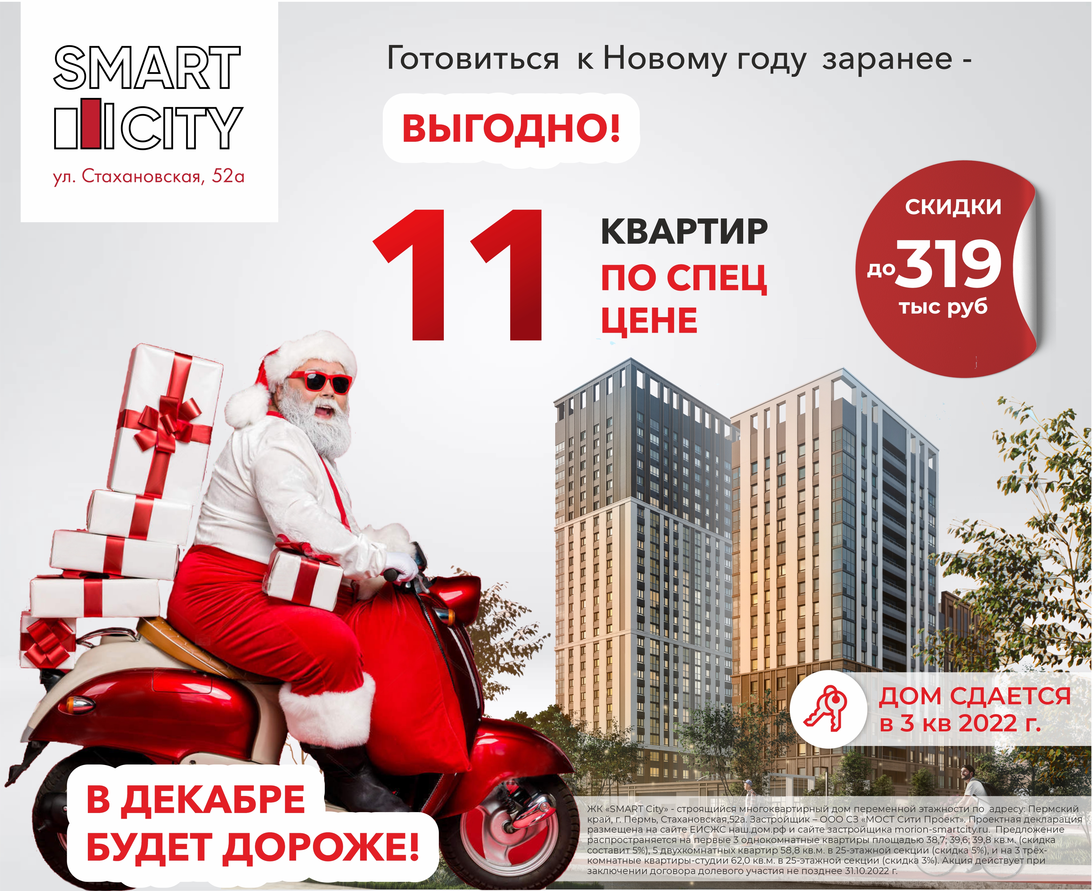 В декабре будет дороже! 11 квартир в ЖК SMART City по специальной цене