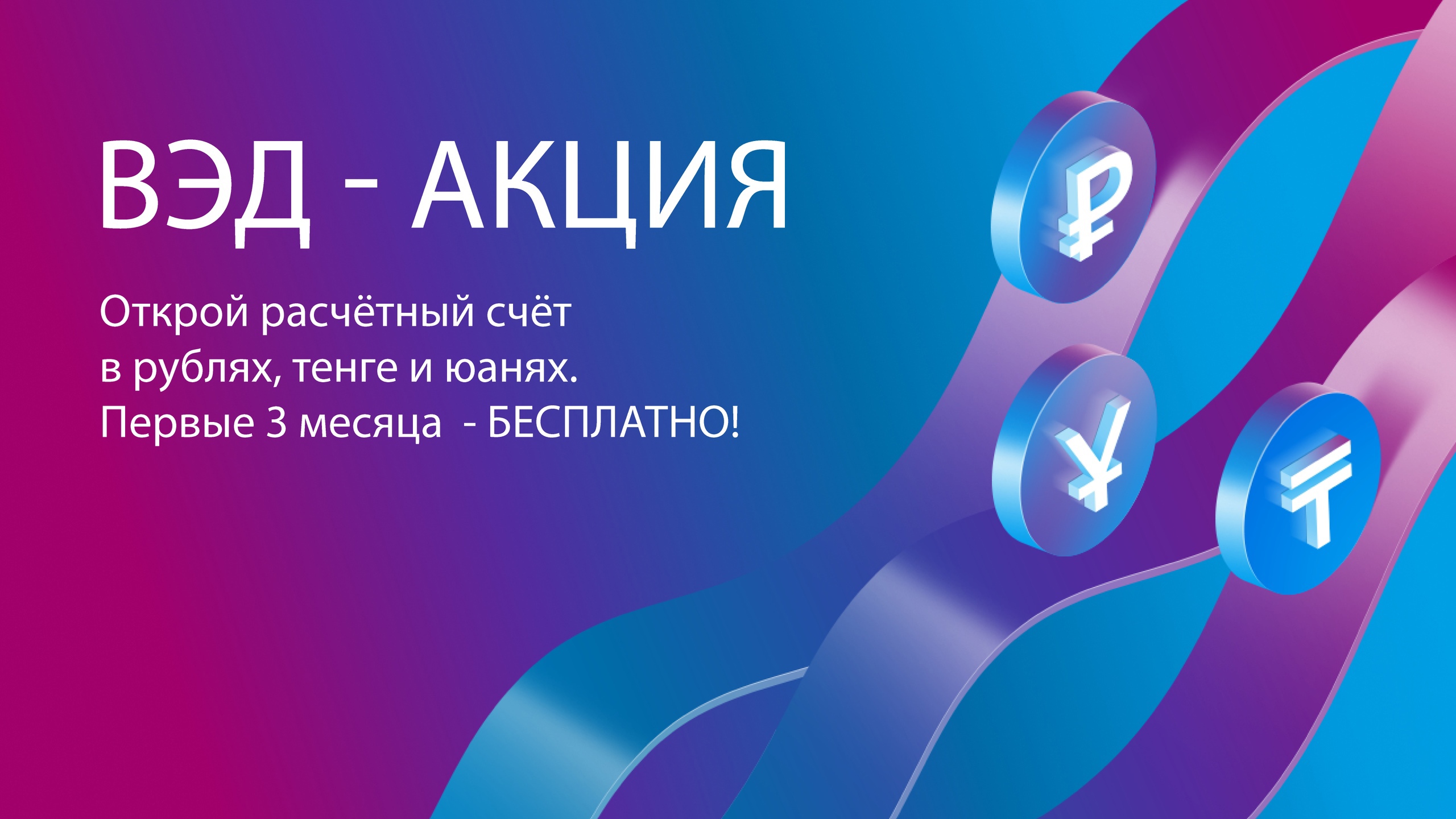 В рамках пакета «ВЭД-акция» до 31 декабря 2022 года предприниматели могут открыть первый счёт в иностранной валюте (в том числе в юанях и тенге) в банке «Урал ФД» и получить 3 месяца бесплатного обслуживания.