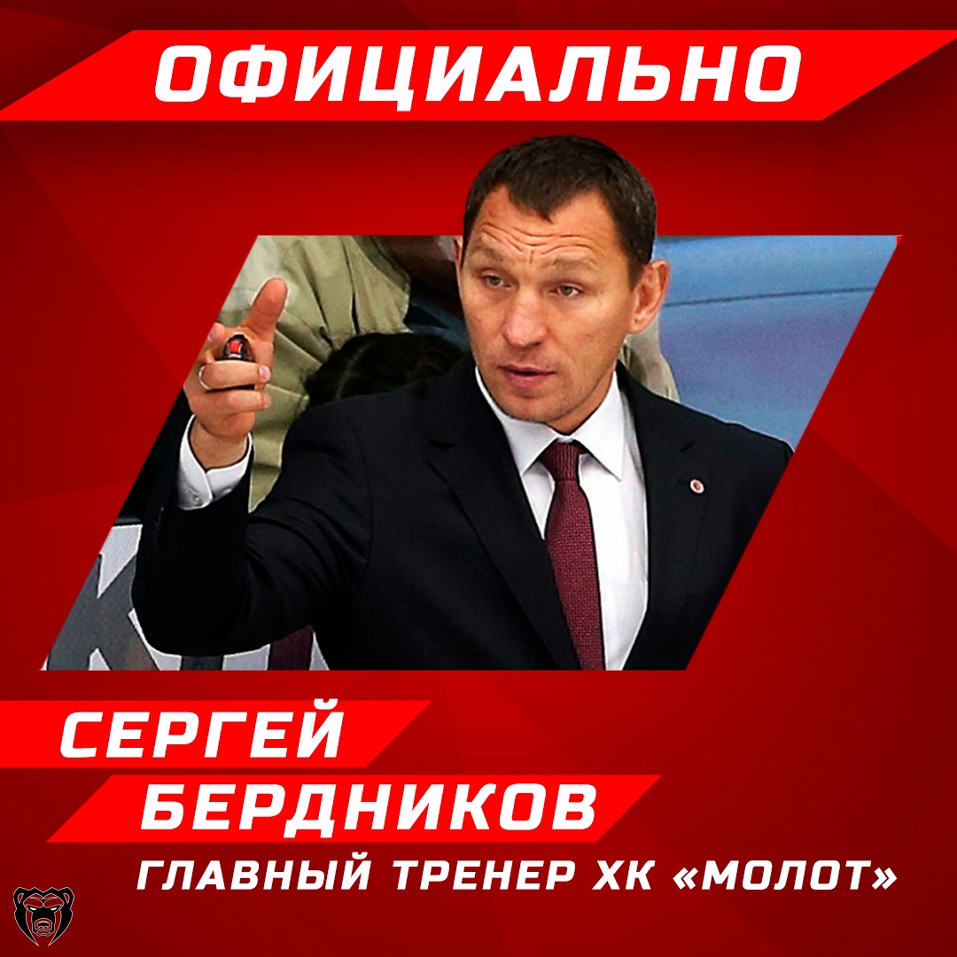 На пост главного тренера ХК «Молот» (Пермь) назначен Сергей Бердников. Об этом сообщили в пресс-службе клуба.