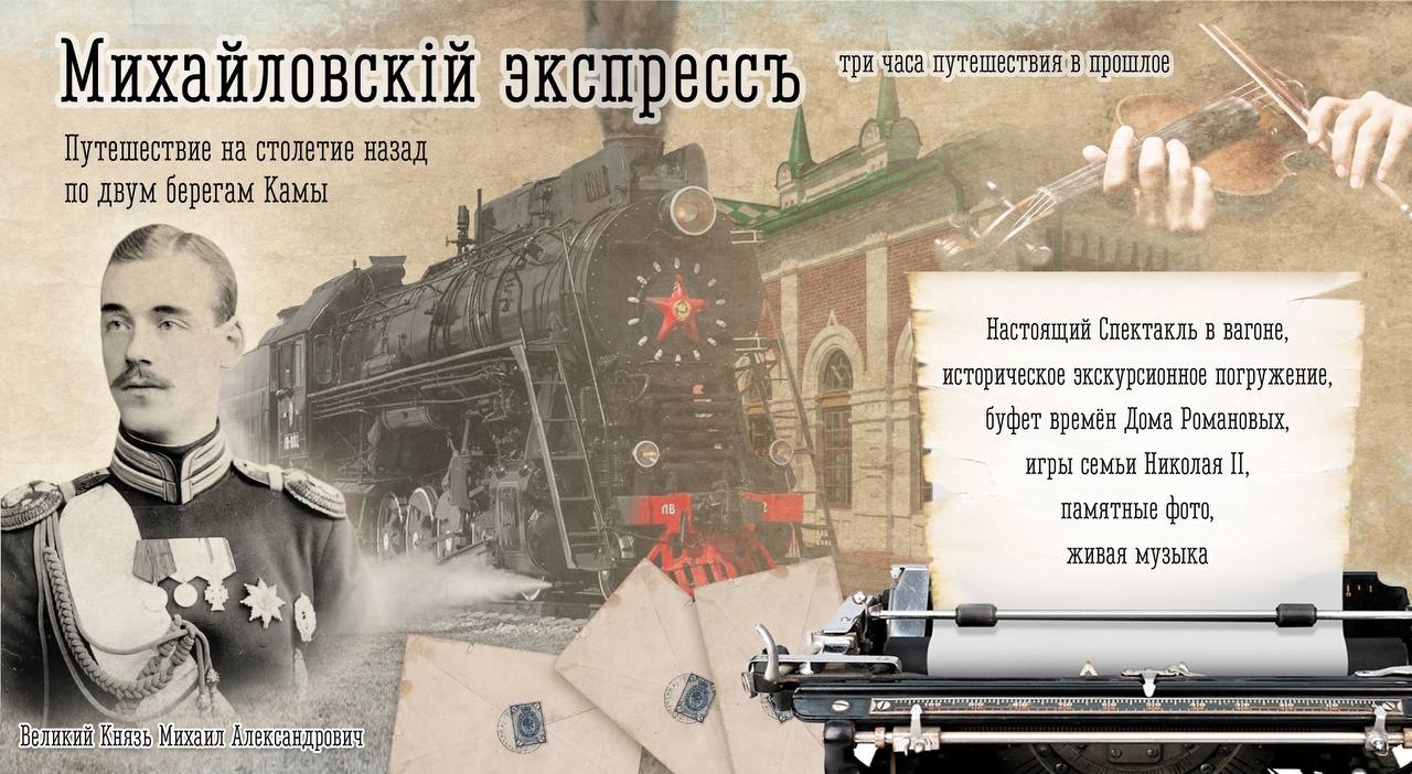 «Пермская пригородная компания» (ППК) вновь пригласила горожан в ретротуры на «Михайловском экспрессе» (назван в честь великого князя Михаила Романова, трагически погибшего в Перми в 1918 году). Они состоятся 3, 4 и 5 ноября.