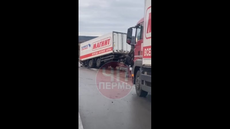 В Пермском крае грузовик продуктовой сети «Магнит» с прицепом вылетел с трассы. Видео инцидента появилось в группе «ЧП Пермь» ВКонтакте и одноимённом telegram-канале.