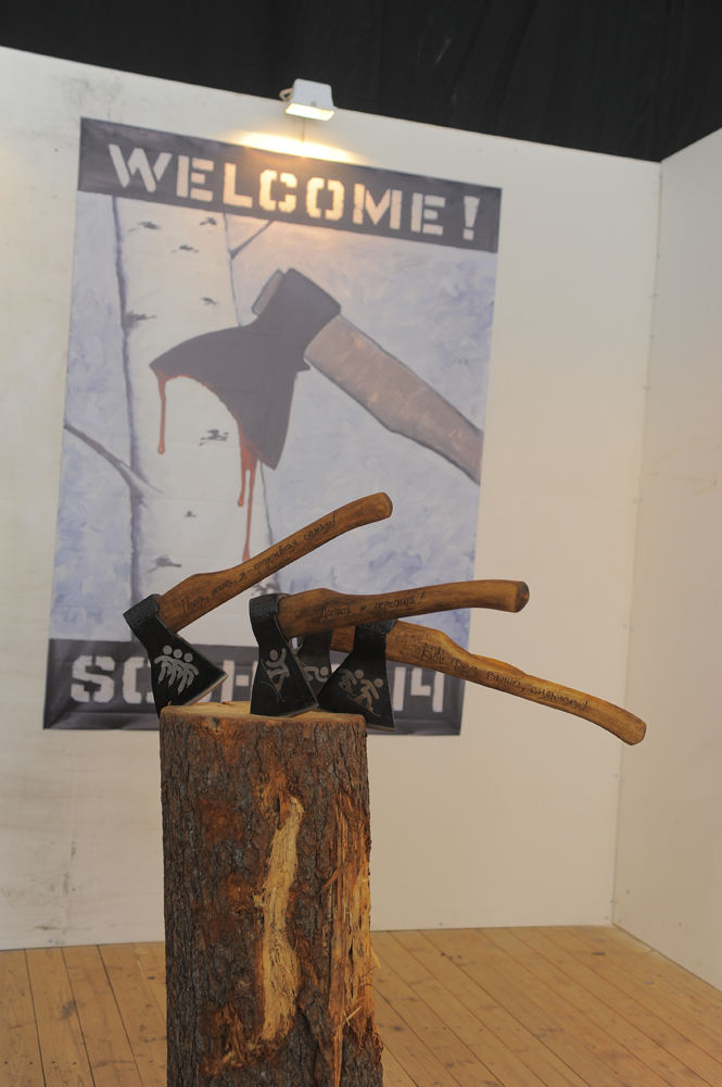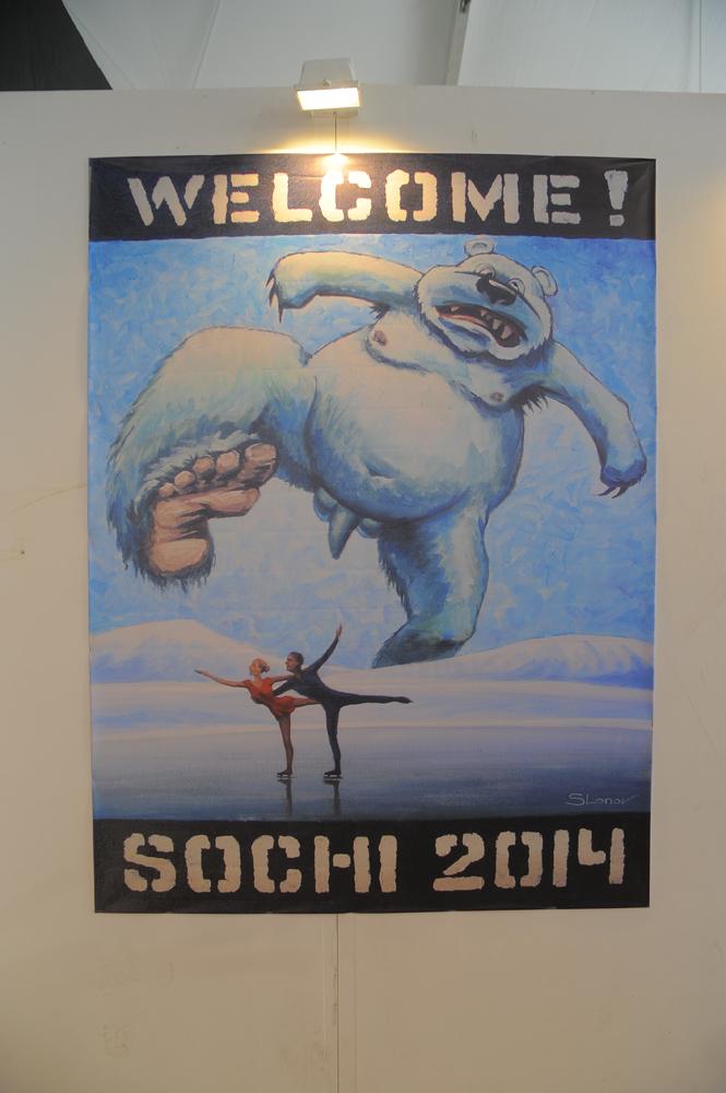 — На этот раз мишенью залётного столичного культуролога-галериста и его художественного сообщника из Красноярска стала тема Сочинской Олимпиады. Произведения, собранные в одном из выставочных павильонов фестивального городка в рамках «Белых ночей», мне напомнили то, что рисовали о России подручные пропагандисты Гитлера, а до этого — прислужники Наполеона.