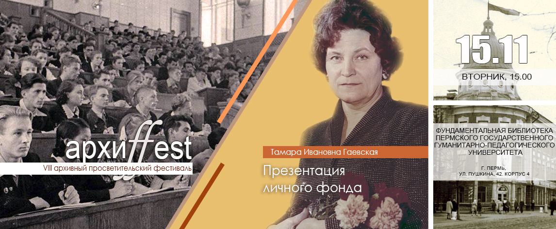 На архивной встрече с участием представителей Пермского педагогического университета, коллег, учеников и друзей Тамары Ивановны запланированы выступления с воспоминаниями об известном учёном и педагоге, а также выставка документов из личного фонда, хранящегося в Государственном архиве Пермского края, и показ научных трудов Т.И. Гаевской из фондов библиотеки ПГГПУ.