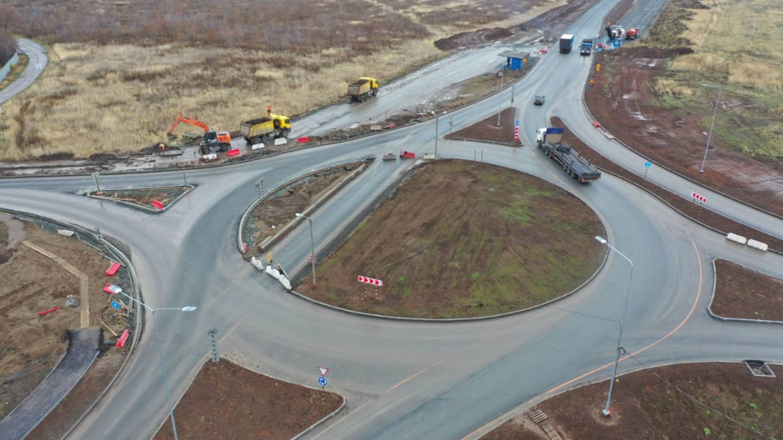 Подрядчик — ООО «ТехДорГрупп» — уложил на развязке и проезжей части новый асфальт, установил знаки, нанёс разметку и почти полностью оборудовал освещение.