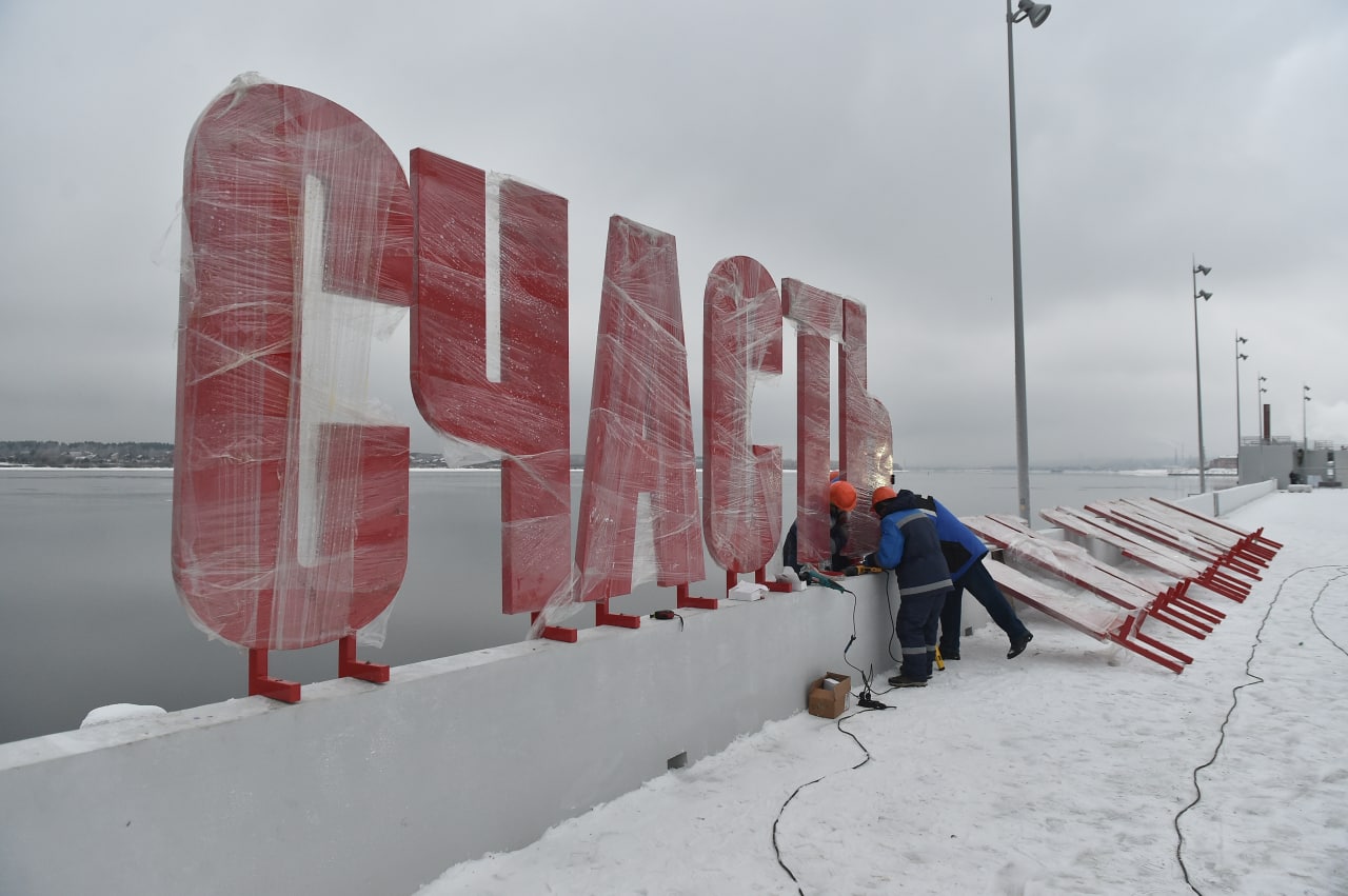 В Перми вернули на прежнее место текстовый арт-объект «Счастье не за горами». В октябре его демонтировали из-за реконструкции части набережной и причалов возле здания Речного вокзала Перми. Теперь он вновь радует пермяков.