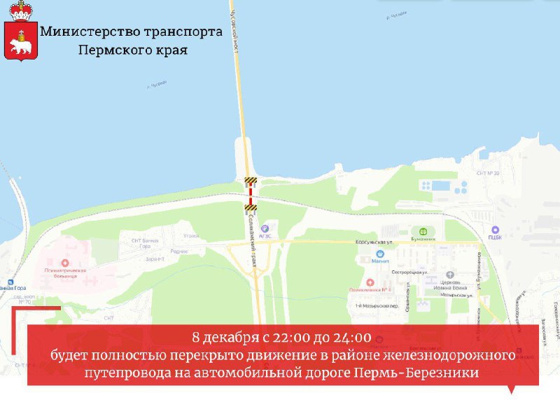 Как сообщили в минтрансе региона, автомобильную трассу Пермь—Березники 8 декабря временно перекроют.