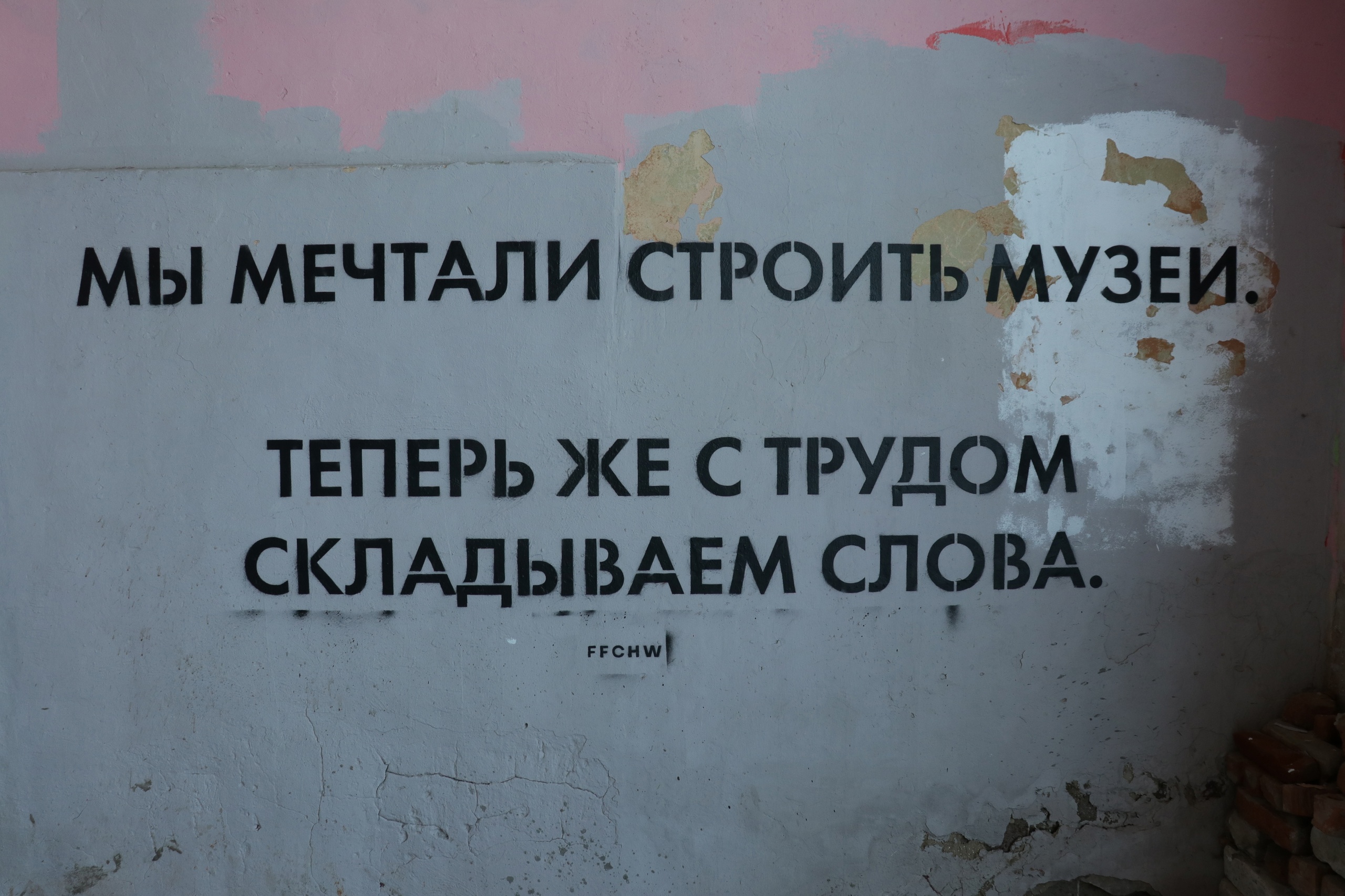 Одна из последних его работ располагается в жилом доме на ул. Сибирская, 1, который был построен в 1954 году. Это текстовое граффити «Мы мечтали строить музеи. Теперь же с трудом складываем слова».