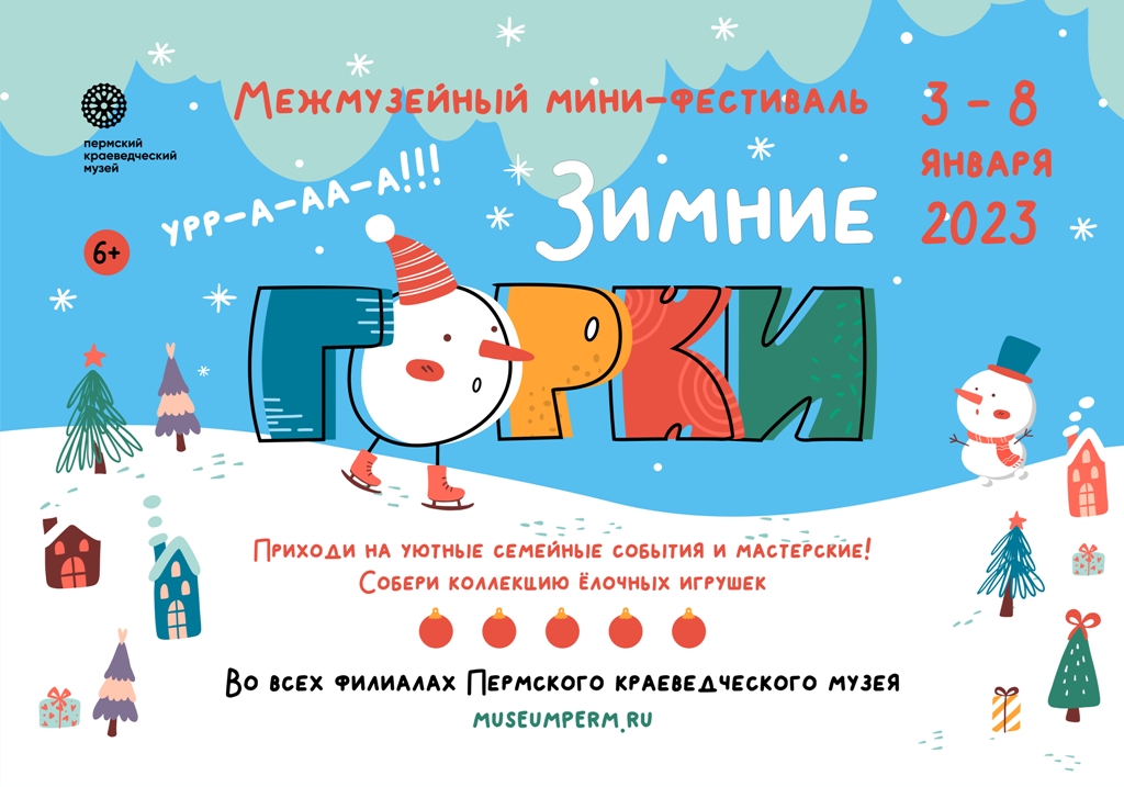 филиалах Пермского краеведческого музея пройдёт мини-фестиваль «Зимние горки» (0+). В Доме Мешкова состоятся авторские экскурсии, квест «Сокровища Дома Мешкова», а также