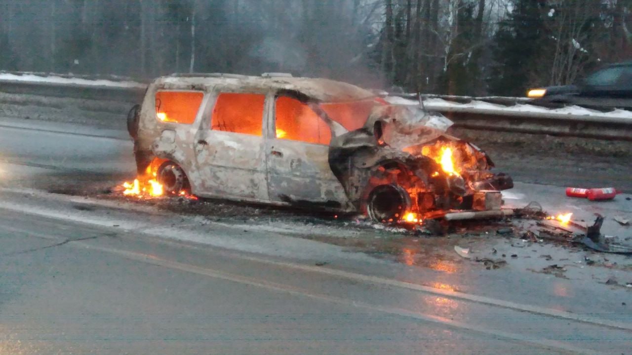 Как сообщает «Коммерсант-Прикамье», Lada Largus «догнал» грузовик, и от удара легковушка загорелась.