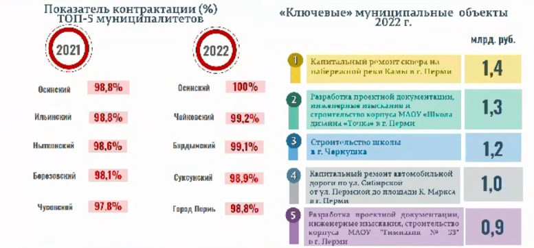 В 2022 году объём государственных закупок Пермского края составил 76,6 млрд руб. Это на 29,6% больше, чем в 2021 году. Объём муниципальных закупок оказался на уровне 55,2 млрд руб., что на 2,8% выше, чем годом раньше. Об этом рассказал министр по регулированию контрактной системы в сфере закупок Пермского края Алексей Зарубин на Совете глав муниципалитетов.
