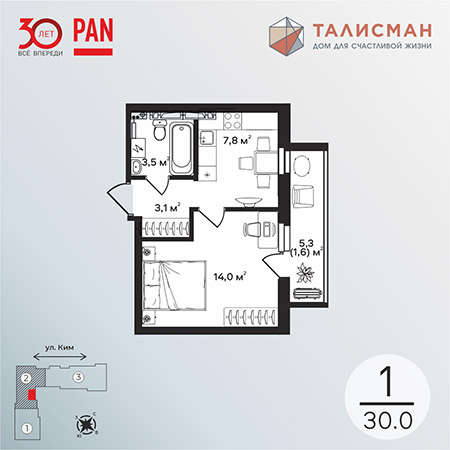 Так, например, в ЖК «Талисман» есть квартиры площадью 30 м2: во всем комплексе их было 11, а на сегодняшний день осталось всего 2! Что в них особенного? Современный рынок новостроек перегружен небольшими квартирами-студиями, а нам удалось на данной площади разметить полноценную функциональную однокомнатную квартиру с отдельной комнатой, кухней и вместительной лоджией.