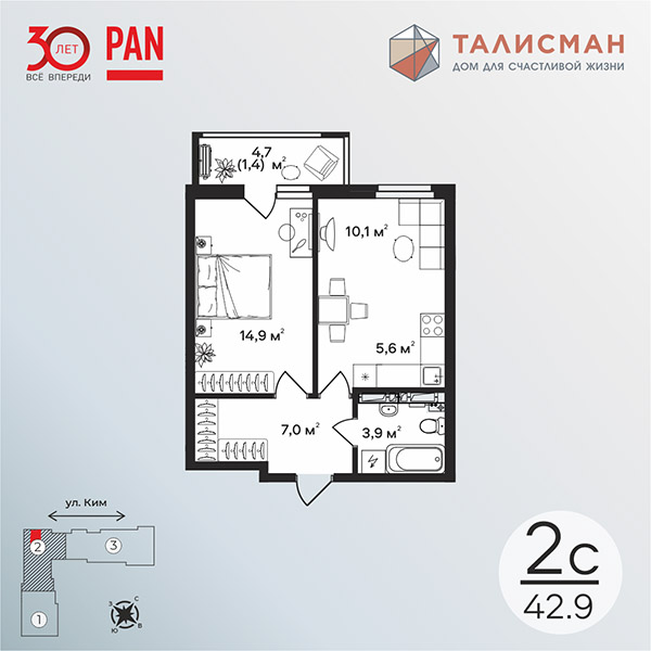 42.9 кв м