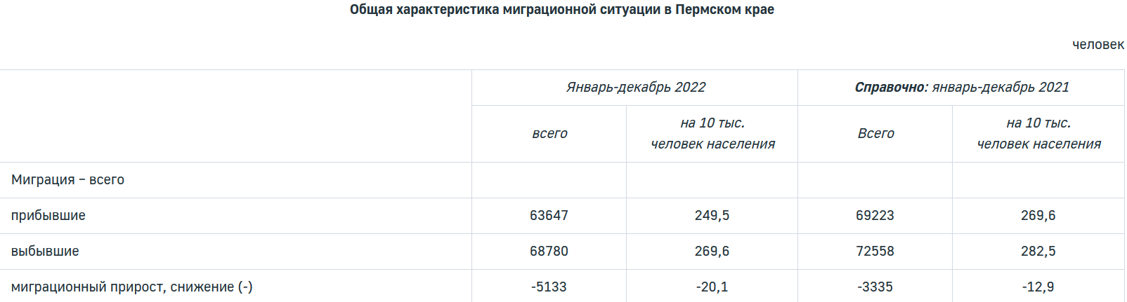 Пермьстат подвёл итоги прошлого года в сфере миграции. По предварительным данным, миграционная ситуация с января по декабрь 2022 года характеризовалась превышением числа выбывших над числом прибывших.