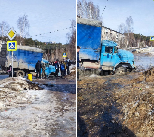 В четверг, 23 марта, в Перми в яму, образовавшуюся на перекрёстке улиц Капитанской и Волгодонской, угодил грузовик. Он застрял в дорожном провале передними колёсами. Фотографии с места происшествия появились в telegram-канале «ЧП Пермь».