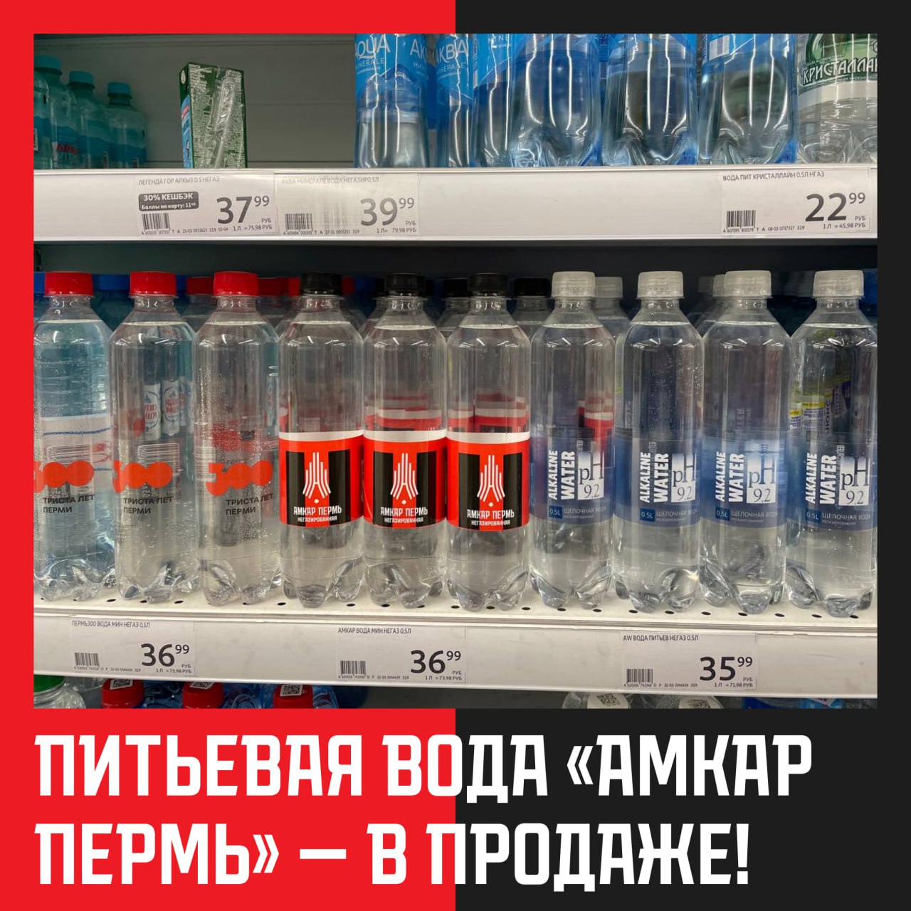 «Клубную воду от Очёрского завода напитков уже можно купить в гипермаркете «Ашан» (ул. Спешилова, 114, ТЦ «СпешиLOVE») и в интернете: Wildberries, Ozon», — сообщает telegram-канал «ФК «Амкар Пермь».