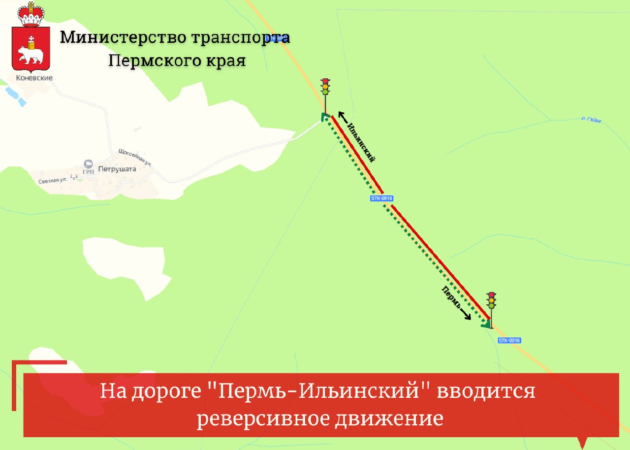 Полностью дорогу перекрывать не будут. На отрезке, где ведётся строительство, будет организовано реверсивное движение со светофорным регулированием. Для проезда закрыта полоса в сторону п. Ильинский, полоса в направлении Перми будет открыта. Ограничения будут действовать до 1 июня 2023 года.