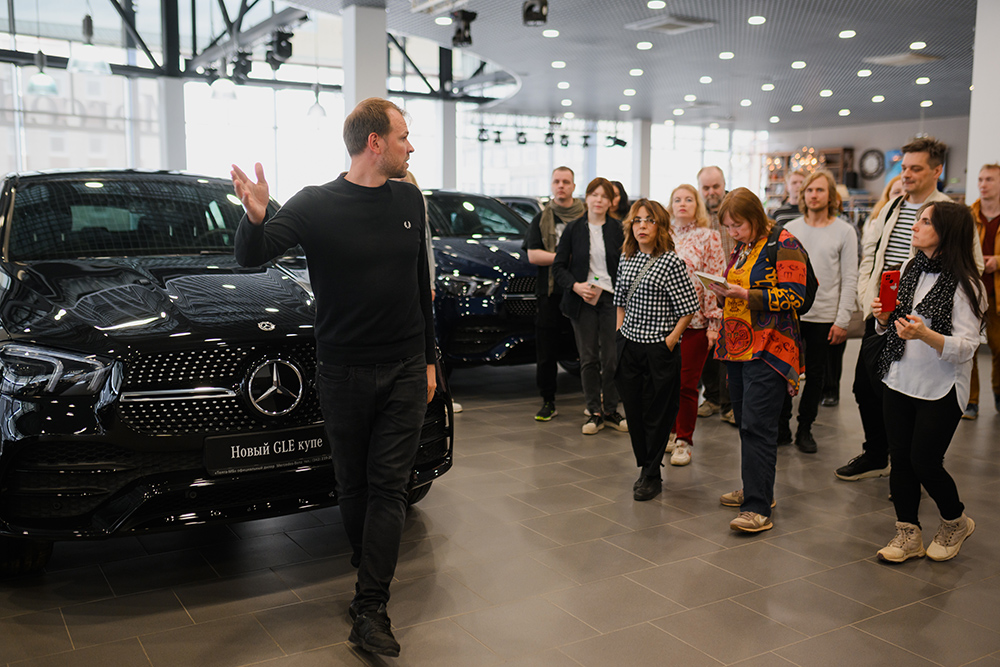 Презентация проекта нового размещения Музея современного искусства PERMM прошла в «пространстве будущего»: в автосалоне «Телта МБ», специализирующемся на продаже «мерседесов» (ул. Крисанова, 4). Здесь пока ещё всё по-старому: выставка роскошных авто, офисы, ремонтный бокс — всё работает; однако благодаря презентации и экскурсии, которые провели директор музея Наиля Аллахвердиева и автор архитектурного решения Александр Леонов, гости смогли представить себе, как это пространство изменится.