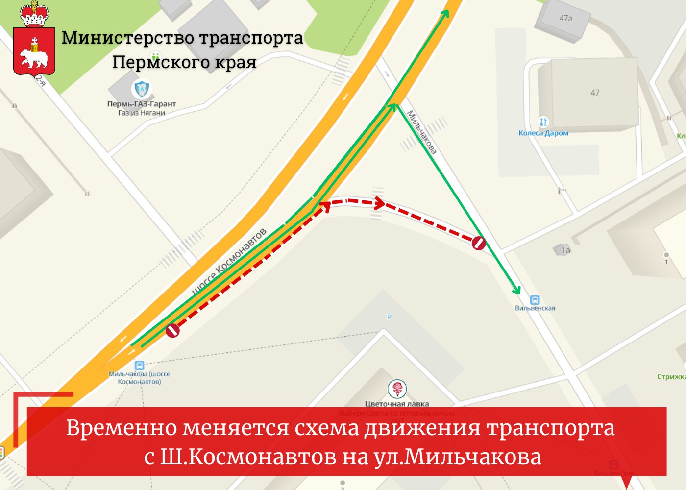 В минтрансе предупредили об изменении схемы движения транспорта на пересечении ш. Космонавтов и ул. Мильчакова в Перми. Они начнут действовать уже с сегодняшнего дня.