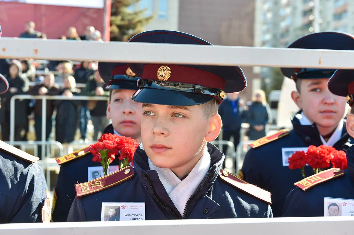 Парад продолжился акцией «Бессмертный полк». В этом году были организованы трансляции онлайн и на медиаэкранах iMall «Эспланада», водители размещали портреты героев на своих автомобилях.