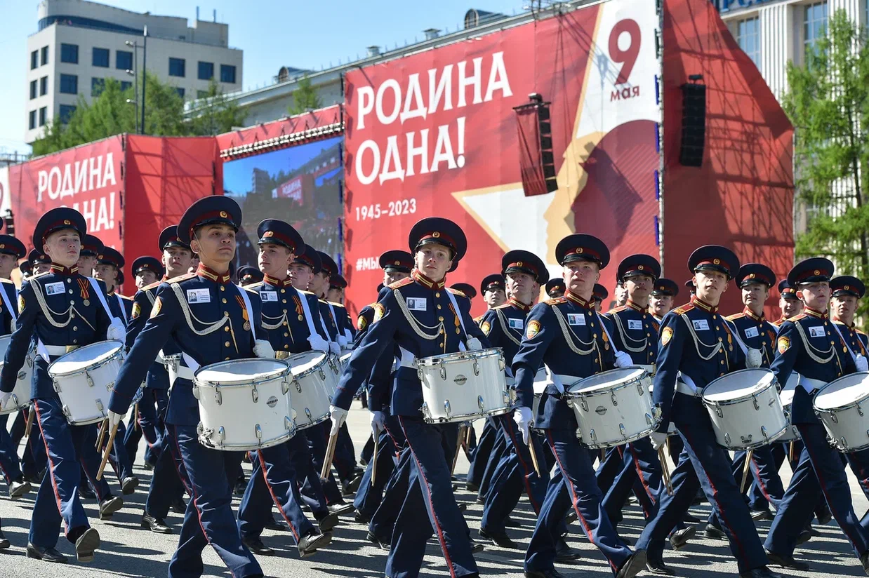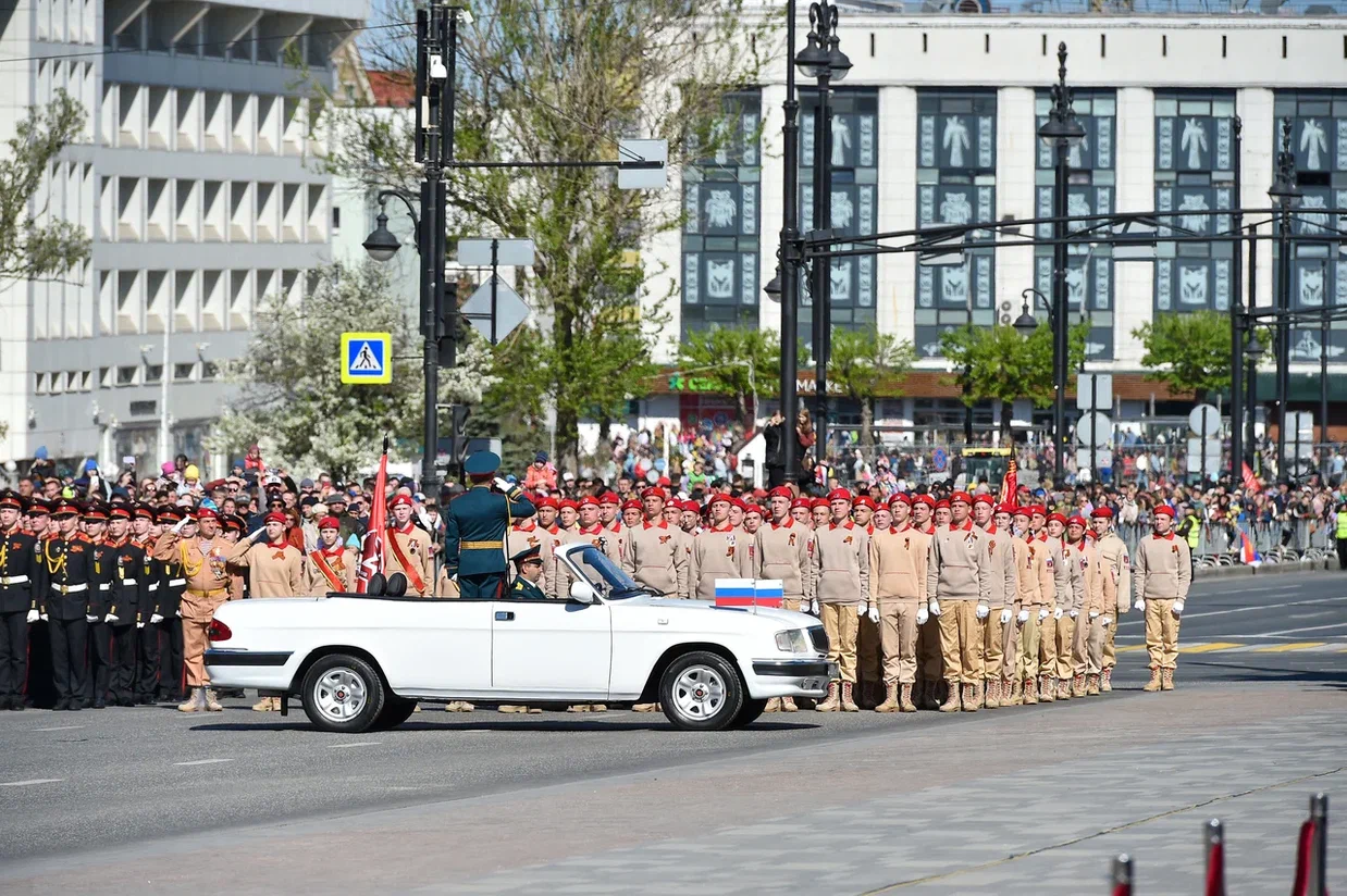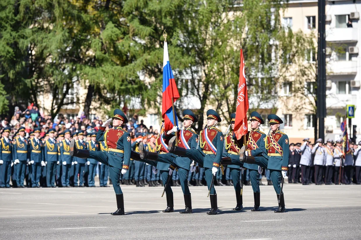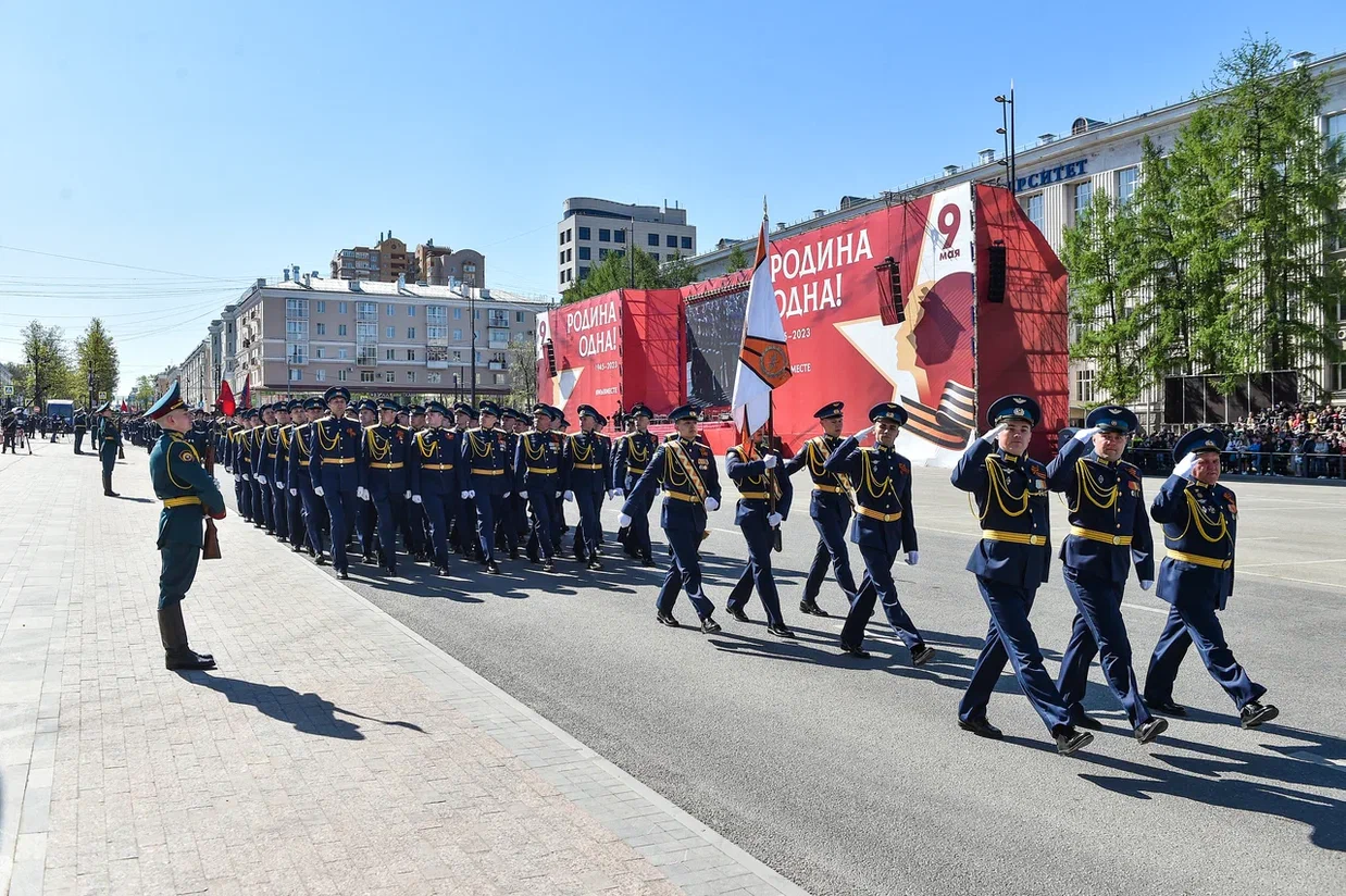 Затем, в 10:00, на Октябрьской площади состоялось торжественное прохождение войск пермского гарнизона под командованием начальника Пермского Суворовского военного училища, генерал-майора Николая Братухина. Парад принял руководитель ПВИ войск национальной гвардии, генерал-майор Евгений Русанов.