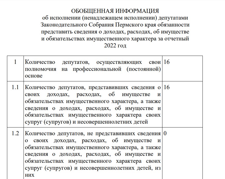 Депутаты Законодательного собрания Пермского края отчитались о своих доходах за 2022 год. Данные в обобщённом виде появились на сайте ведомства.