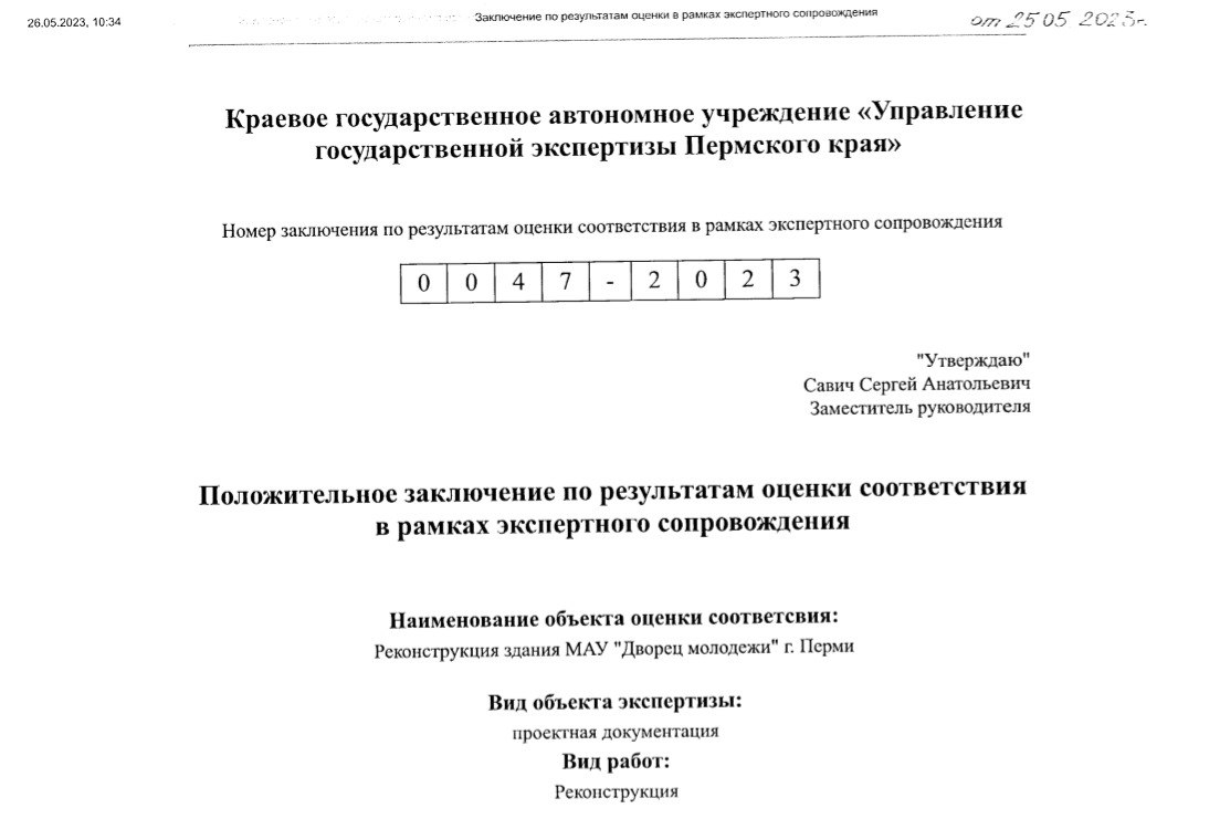 Сегодня в Управлении капитального строительства сообщили, что проект реконструкции Дворца молодёжи в Перми получил положительное заключение госэкспертизы.