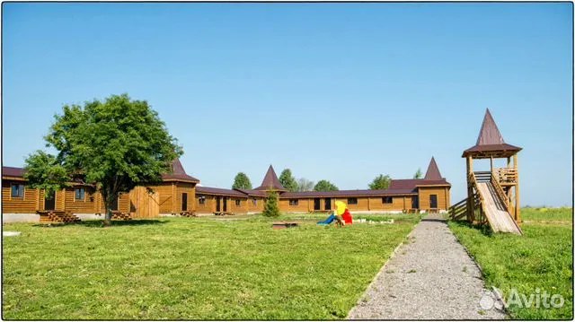 На базе находятся двухэтажный жилой дом, одноэтажные таунхаусы на 6-7 номеров, отдельное здание кафе с кухней — на 71 кв. м, башня с детской игровой комнатой, баня и беседки с мангалом, помещения для персонала и футбольное поле. Комплекс снабжён собственной котельной, скважиной и автономной канализацией. Продавец является частным лицом.
