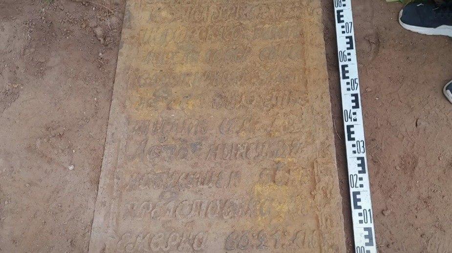 Бригада строителей нашла надгробие на глубине 1,5-2 метров во время раскапывания траншеи для устройства трубы водоотведения. Плита оказалась очень тяжёлой, около 200 кг. К находке отнеслись бережно, сообщили пермским археологам.