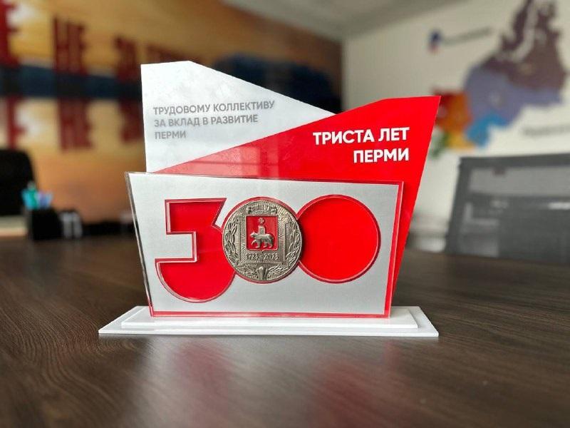 В честь 300-летия города компания «Ростелеком» получила юбилейный памятный знак «Трудовому коллективу за вклад в развитие Перми». Награду директору пермского филиала Петру Козловскому вручил заместитель председателя правительства Пермского края Алексей Черников.