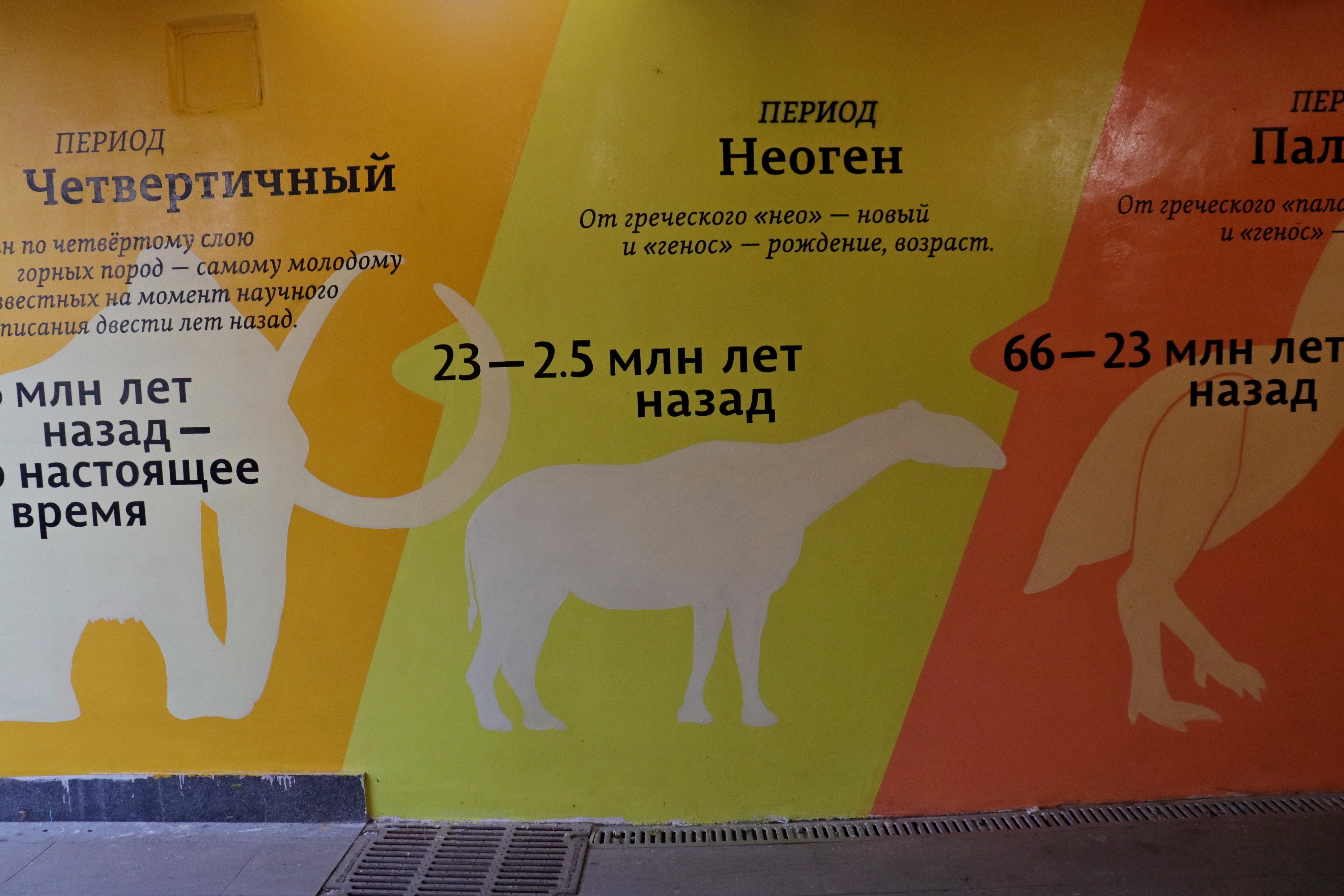 Его нанесли на стены подземного перехода в виде геохронологической таблицы