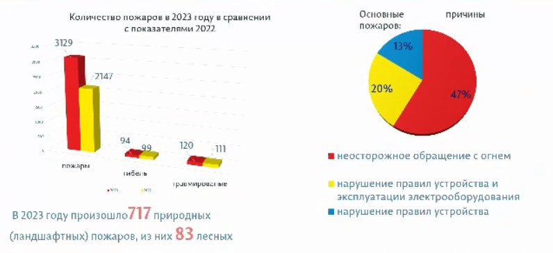 Он отметил, что в этом году увеличилось количество природных ландшафтных пожаров. С начала года произошло 713 таких пожаров и 83 — лесных, что в 2,5 раза больше показателей прошлого года.