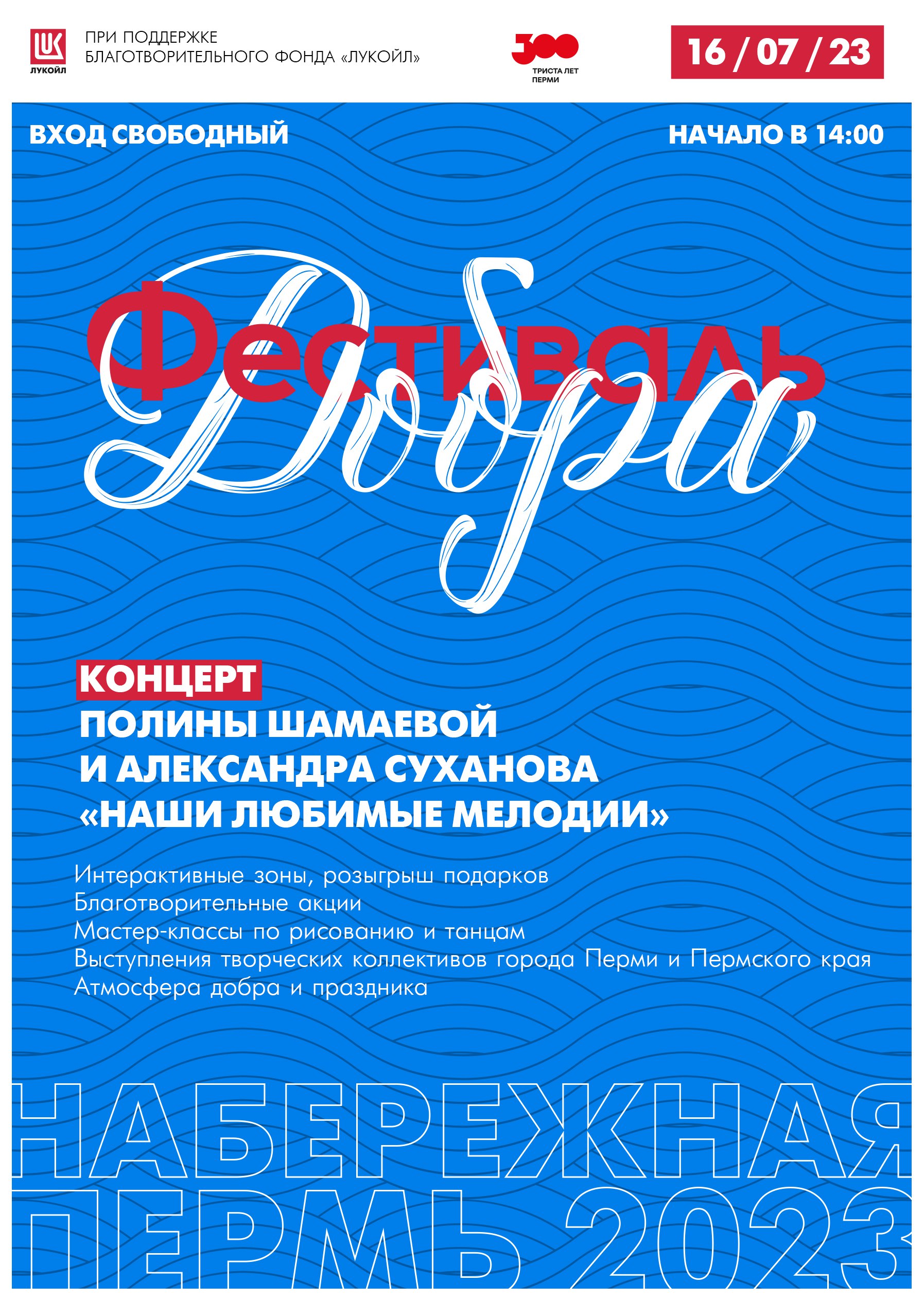 16 июля в Перми на набережной Камы в амфитеатре пройдёт «Фестиваль добра».