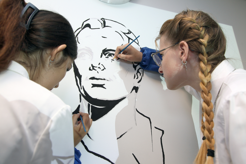 Ученики Техно-школы им. Виктора Савиных в Новых Лядах изобразили на стене учебного заведения силуэт бюста Юрия Гагарина, который в июне этого года был демонтирован в Киеве. Эскиз граффити разработал специалист детского центра творчества «Шанс» при поддержке АО «Протон-ПМ», сообщили в пресс-службе предприятия.