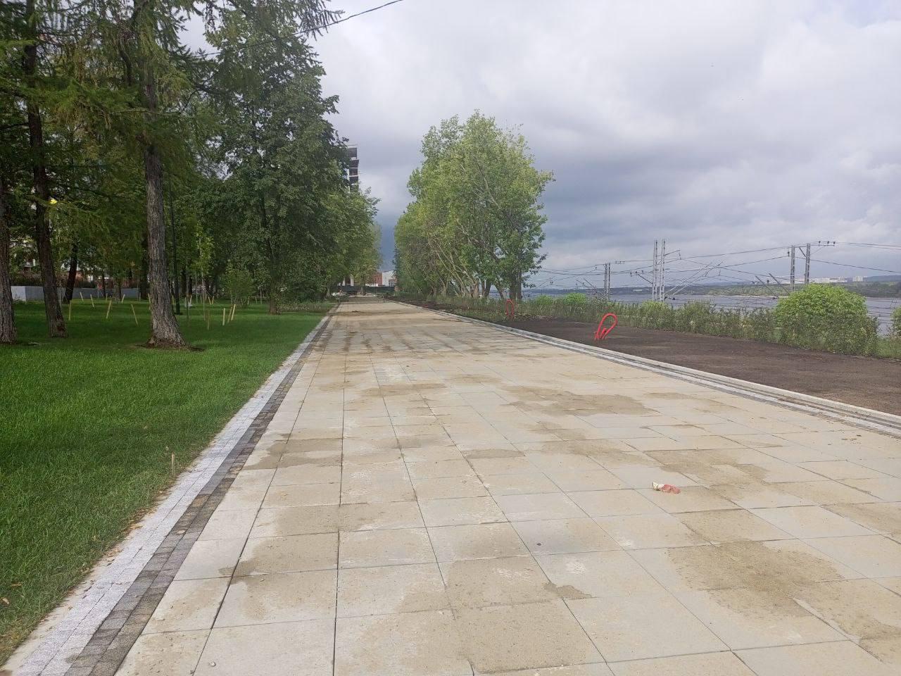 Также уложено более 4,2 тыс. кв. м рулонного газона, высажено 3 тыс. многолетних растений, 1,6 тыс. кустарников и 40 деревьев.