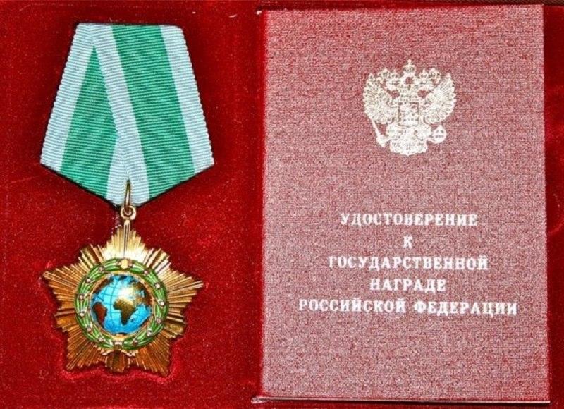 Орден дружбы — государственная награда РФ. Учреждена указом президента России в 1994 году. Орденом награждаются граждане РФ и иностранных государств за особые заслуги в укреплении мира, дружбы, сотрудничества и взаимопонимания между народами; за плодотворную деятельность по сближению и взаимообогащению культур наций и народностей; за большой вклад в реализацию совместных с РФ крупных экономических проектов и привлечение инвестиционных средств в экономику России, развитие двустороннего и многостороннего сотрудничества; за широкую благотворительную деятельность и иные заслуги перед РФ.