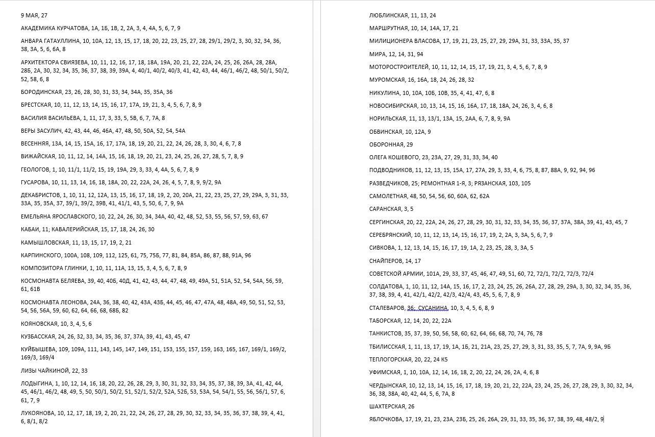 ул. КИМ, 2, 17, 19, 51, 53, 55, 57, 60Б, 63, 64, 69, 75, 77;