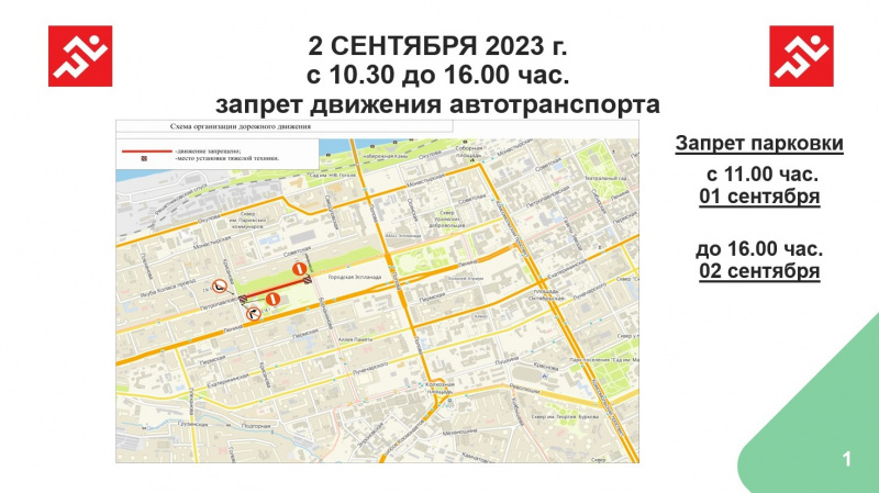 Во второй день, 3 сентября, перекрытие улиц будет более массовым. Так, с 05:00 до 17:00 движение транспорта будет ограничено на: