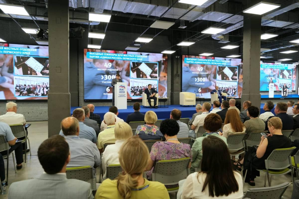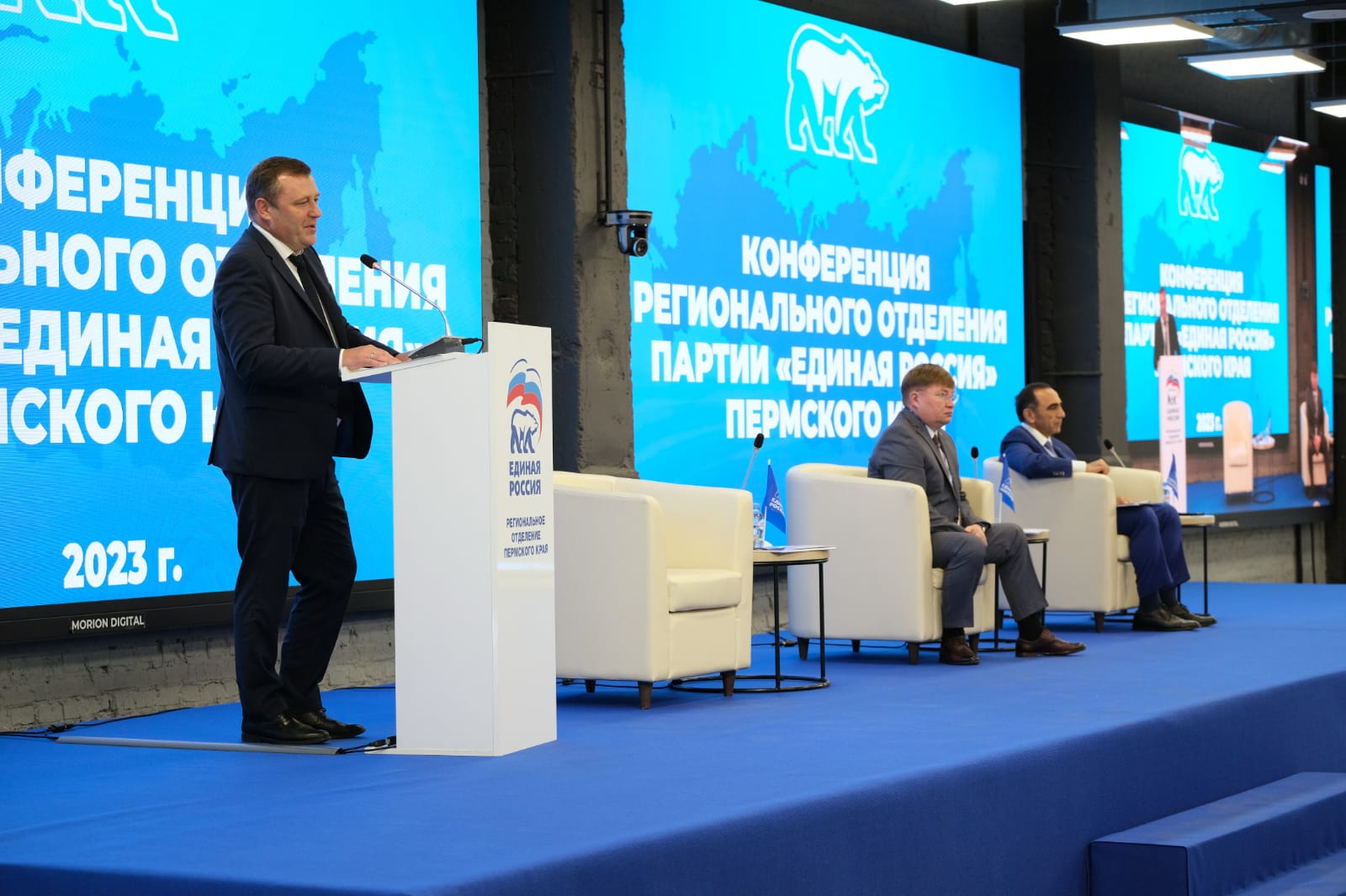 С докладом о работе регионального отделения партии в 2022-23 годах выступил секретарь реготделения Вячеслав Григорьев. Он напомнил, что с началом специальной военной операции по защите Донецкой и Луганской народных республик 24 февраля 2022 года региональное отделение партии «Единая Россия» Пермского края развернуло на базе всех 49 местных отделений партии, а также регионального исполкома, Региональной общественной приёмной председателя партии и ресурсного центра «Пермь семейная» пункты сбора гуманитарной помощи для беженцев.