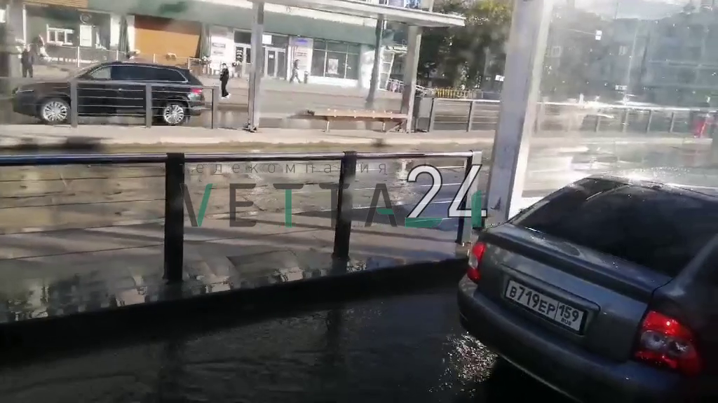 В Перми утром, 23 августа, канализационными стоками оказался затоплен центр города. Вода текла по проезжей части ул. Ленина в районе ЦУМа и Комсомольскому проспекту, улицам Газеты «Звезда» и Екатерининской.