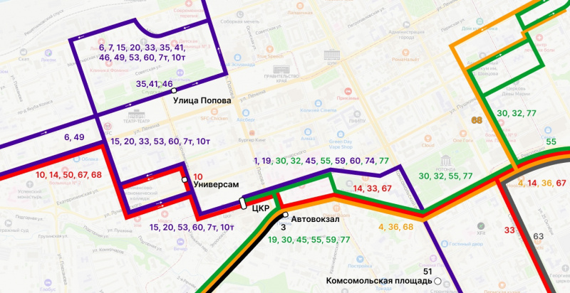 Планируется сократить длину пути для маршрутов № 3, 10, 41, 51 и 71. Конечными остановками станут «Автовокзал» для маршрута № 3, «Универсам» для маршрута № 10, «Улица Попова» для маршрута № 41. Маршрут № 51 будет следовать только до Комсомольской площади, а маршрут № 71 — до Центрального рынка.