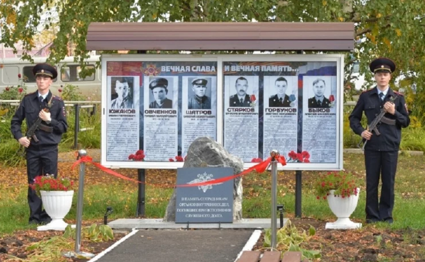 Мемориал открыт в честь сотрудников органов внутренних дел, погибших при исполнении своего долга: Ивана Южакова, Павла Овченкова, Савелия Шатрова, Вячеслава Старкова, Дмитрия Горбунова и Алексея Быкова.